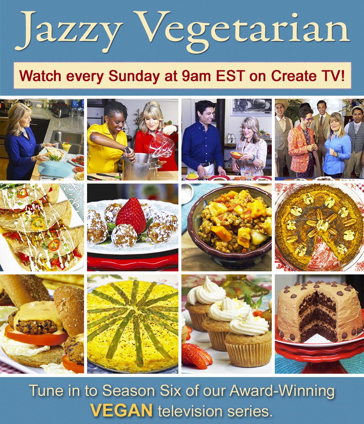Woo hoo! You can now watch Jazzy Vegetarian on the Create Channel, Sunday mornings at 9am EST! Jazzy Vegetarian is the hit, long-running, vegan cooking show featuring Taste award-winning vegan chef, cookbook author, and host Laura Theodore. Each…