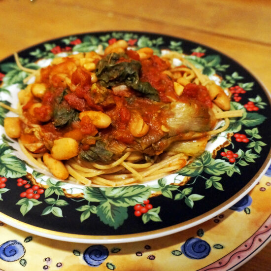 Spaghetti with Escarole and Cannellini Beans