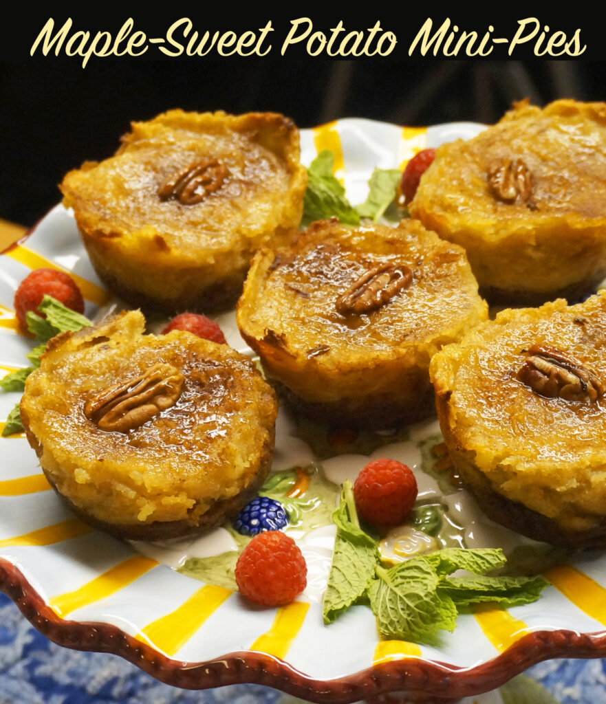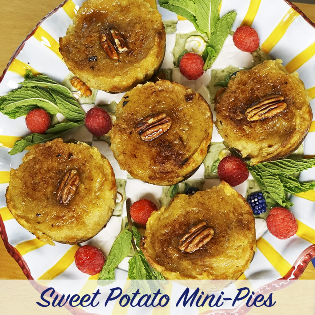 Sweet potatoes become a yummy dessert when combined with a bit of cinnamon and maple syrup and baked in a crisp cookie crust. These Maple-Sweet Potato Mini-Pies are a wonderful way to use leftover sweet spuds and they make an easy dessert for a weeknight meal. You can serve these delicate, quick-to-prepare pies at holiday time in place of pumpkin pie, too!