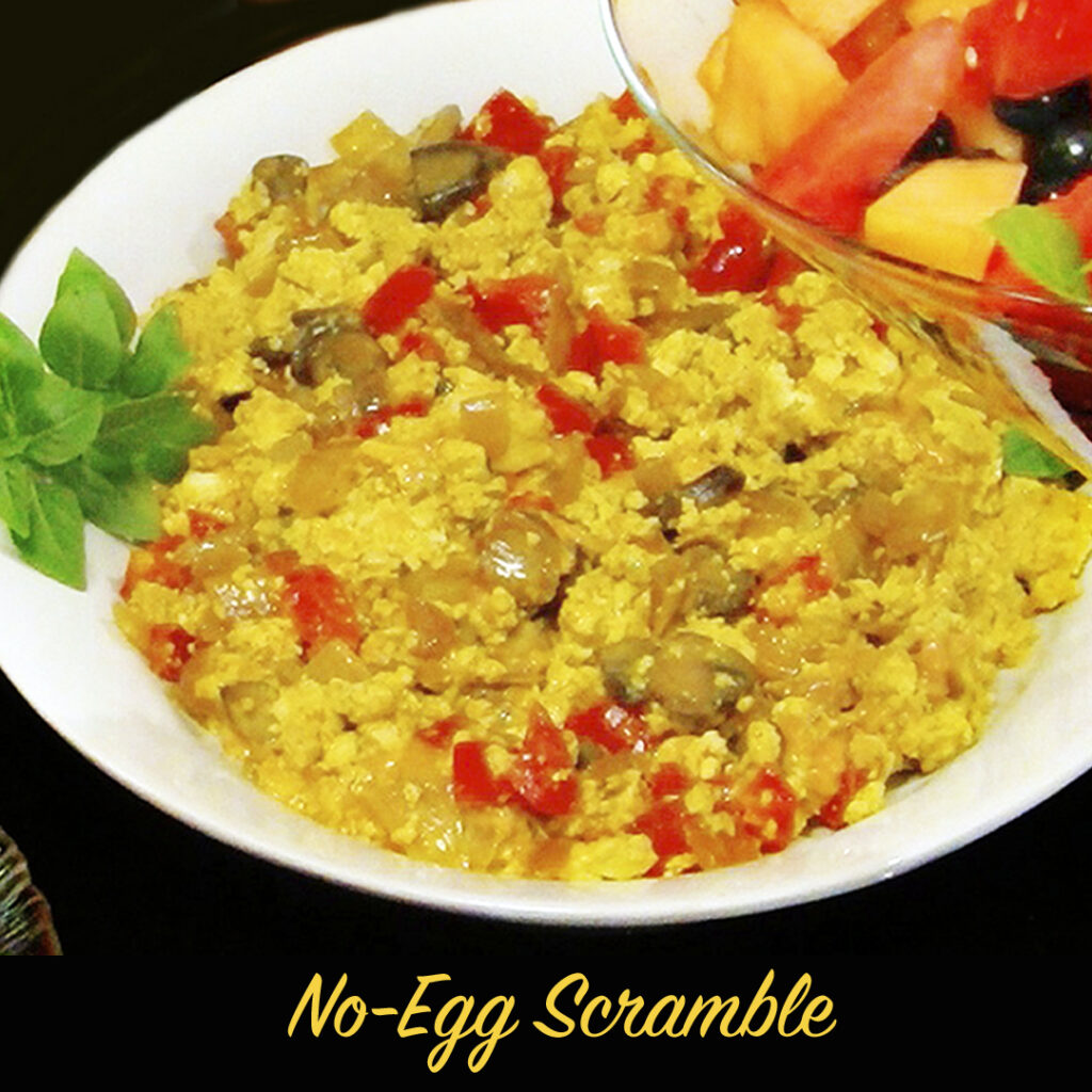 If you’ve been missing scrambled eggs, then this is the dish for you. For a hearty breakfast, serve the scramble with whole-grain toast, vegan bacon or sausage, and fruit on the side. When I serve this dish family-style, I spoon the hot scramble into a covered serving tureen so it stays warm at the table. WATCH me prepare this delicious breakfast classic on YouTube.