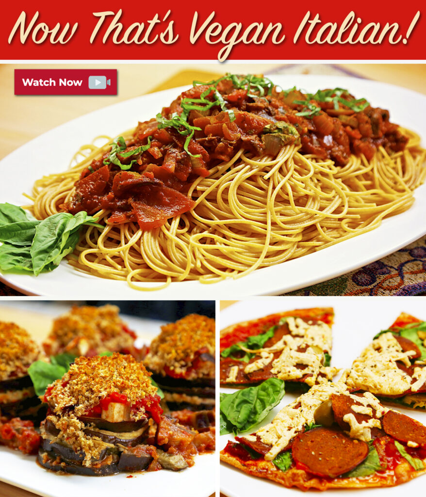 This week on YouTube, I share Classic Italian Favorites with a tasty plant-based twist. Recipes include “Laura’s Spaghetti Sauce,” 15-minute “Vegan-Ease Pizza,” and delicious “Eggplant Stack-Ups with Cashew Cheese.” Plus, I visit with the great Lidia Bastianich! Watch HERE.