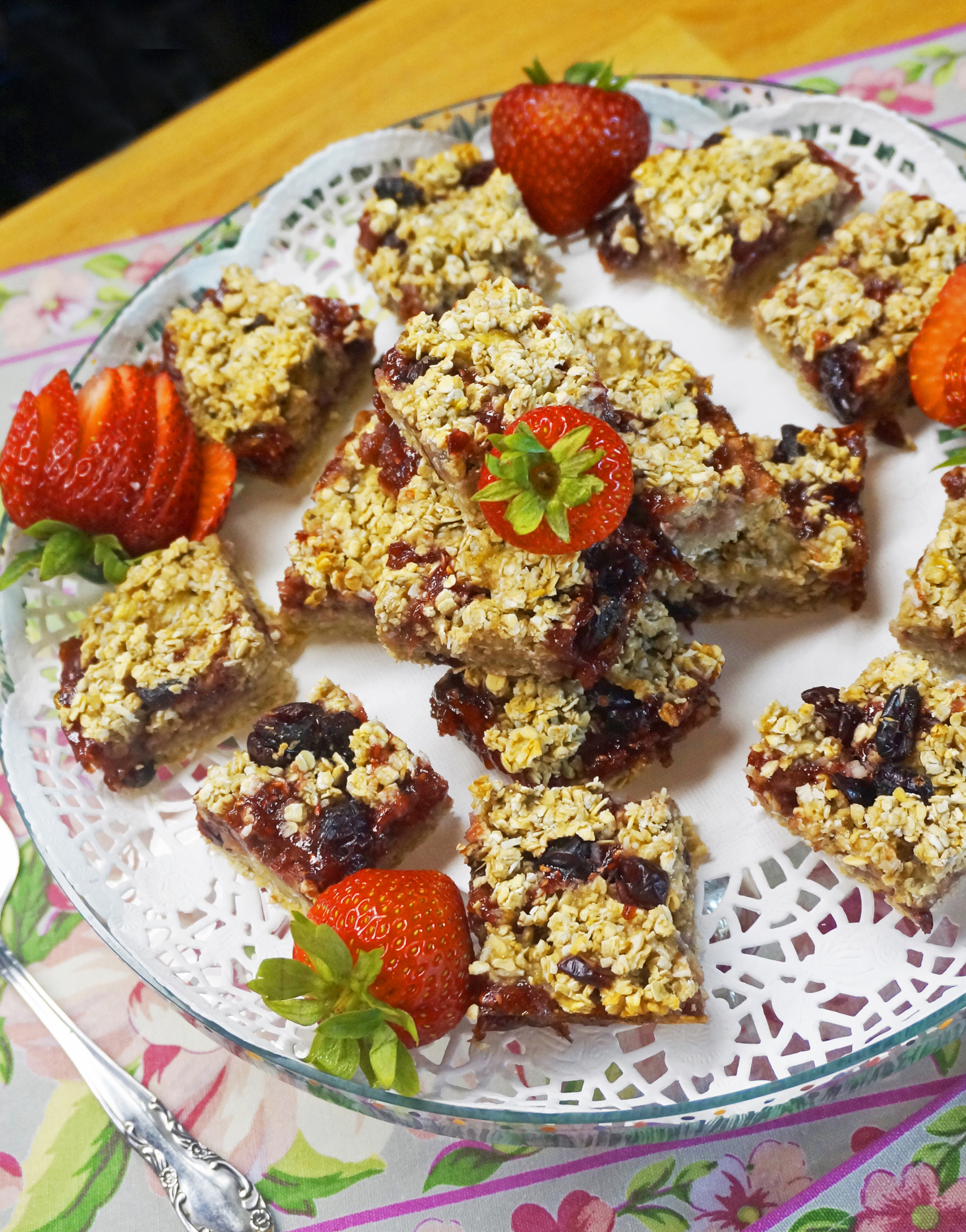 Just a few basic ingredients come together to make up these scrumptious Raspberry Oat Squares that do triple duty as a healthy dessert, afternoon snack or bountiful breakfast treat.