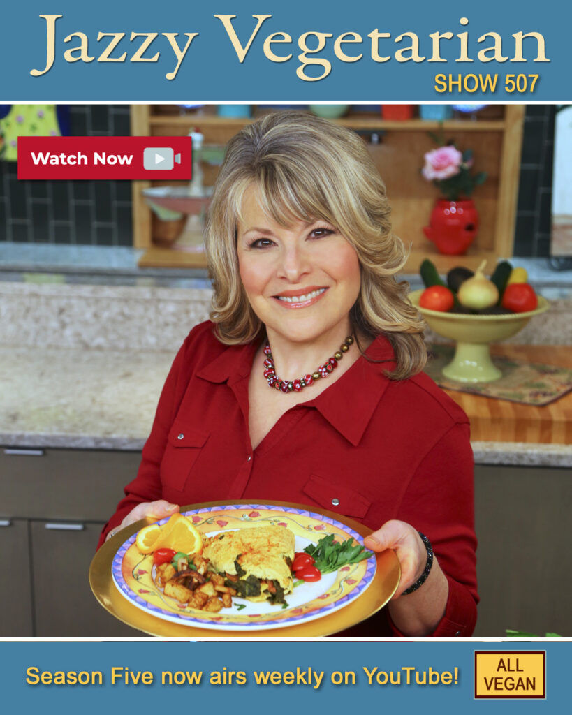 I tried for years to create a tasty vegan omelet, so I was super excited when I came up with this yummy oven-baked vegan version. Because a tofu-based omelet is more delicate than the classic egg recipe, I have developed a unique method for helping it to firm up for serving. It takes a little bit of extra fuss, but is well worth the effort! WATCH me prepare this brunch classic made vegan on YouTube HERE.